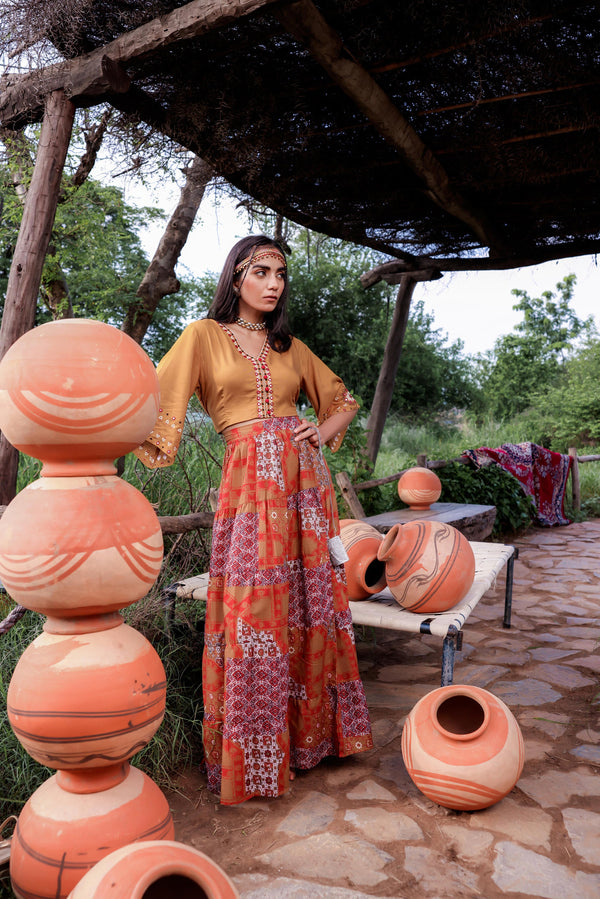 Juniper Mustard Floral Embroidered Co-Ord Set With Mirror & Thread WorkProduct Details:Stay stylish in this mustard co-ord set featuring a flor...