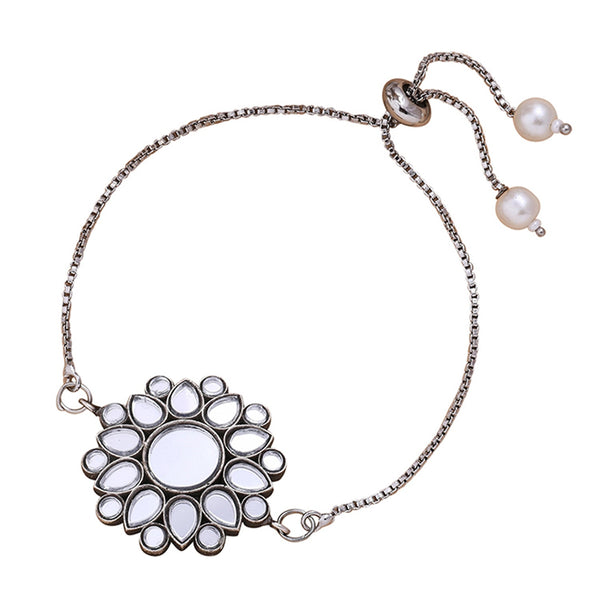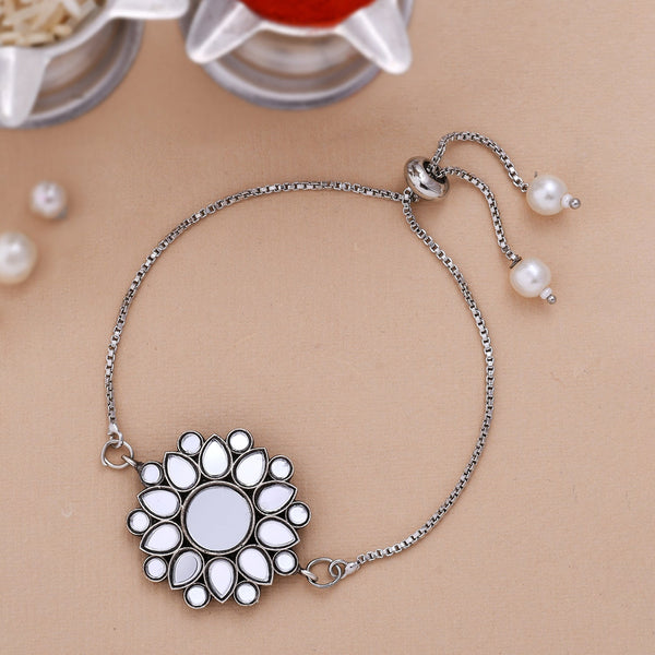 trueBrowns X Voylla Kundan Embedded Silver Toned Bracelet Style Rakhi - Freesize