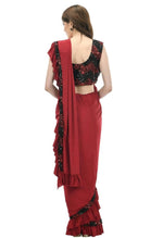 Mominos Fashion All Season Wear Olive Red And Black Ruffled Ready To Wear Saree - Ready to wear saree - Olive Red and black - Pure Lycra Fabrics