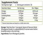 Nature's Velvet Wheat Grass Powder Ingredients: Pure wheatgrass powderHow to use: Take less than 1 teaspoon (3 gms ) of Natures Velvet Wheat Grass ...