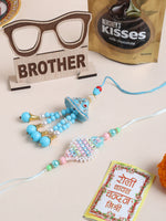 NVR Set of 2 Blue & Pink Artificial Stones & Beads Bhaiya Bhabhi Rakhi Combo