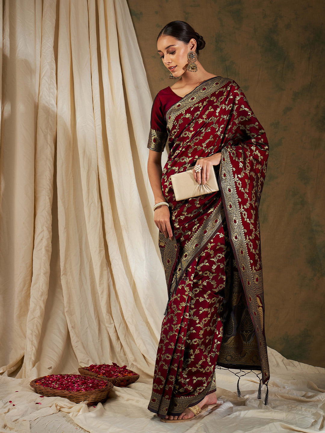 Sangria Woven Design Zari Kanjeevaram Saree - Distacart