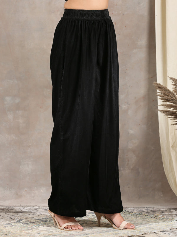 trueBrowns Black Velvet High Waist PantDescription Velvet highwaist pant with elasticated waist. Style it with a kurta or crop top to complete the ...