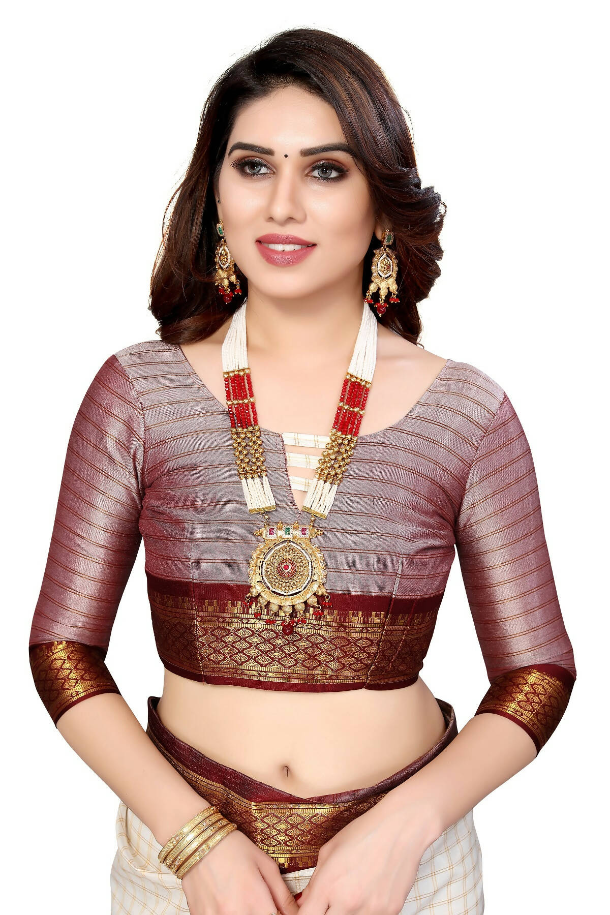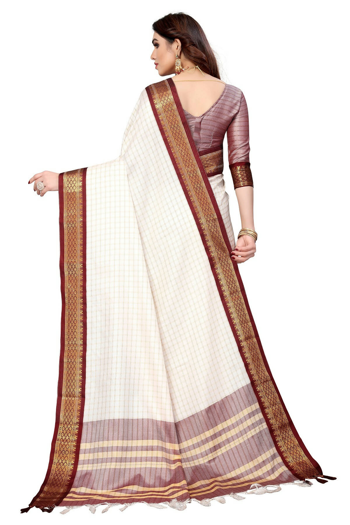 Vamika Weaving White Cotton Silk Saree (DEVAL MAROON)