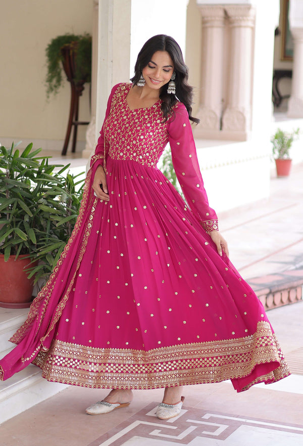 Vedant Vastram Georgette Embroidery & Sequence Work Stitched Ethnic Gown-PinkGownFabric : Pure GeorgetteWork : Heavy Embroidery & Sequence...