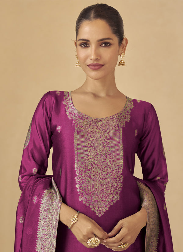 Vegaa Fashion Purple Viscose Silk Jacquard Wedding Wear Salwar Suit