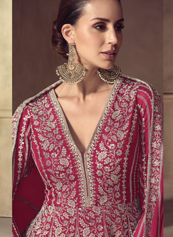 Vegaa Fashion Rani Pink Chinon Silk Embroidered Designer Anarkali Suit