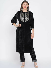 Women Republic Black Velvet Embroidered Kurta With Pants