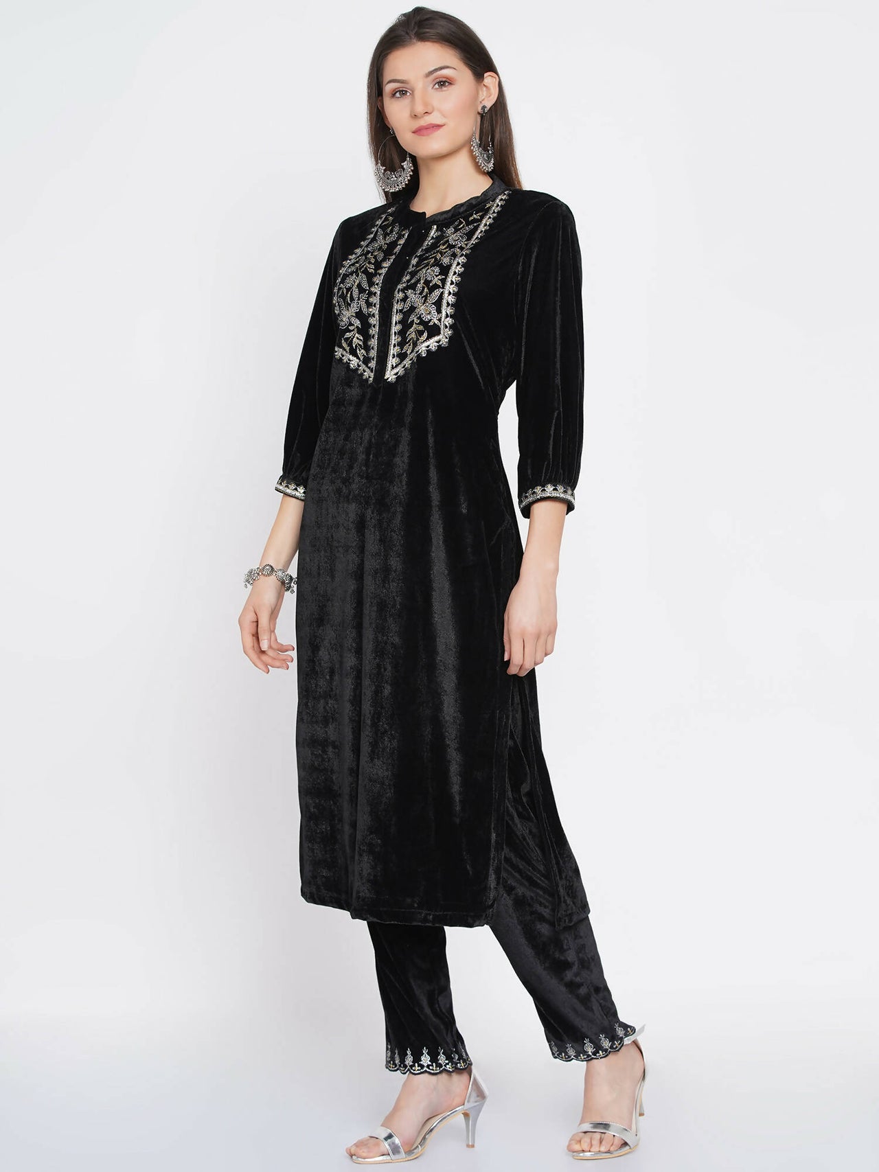 Women Republic Black Velvet Embroidered Kurta With Pants - Distacart