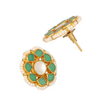 Nuyug 22K Gold-Plated Green Kundan Studded & Pearls Beaded Floral Shaped Studs