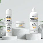 The Urban Shield Body Care Combo is a three-step set designed for a simple and consistent shower routine. It includes a body wash for daily cleansing, a body scrub for occasional exfoliation, and a body lotion for everyday moisturization. Together, they form a convenient trio to fit into your self-care and bath routine.