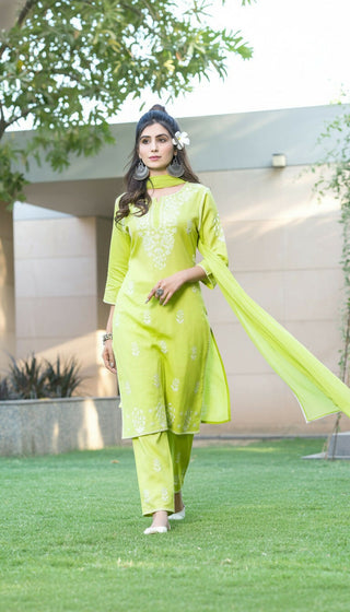 BulBul Fashionista Green Cotton Kurta Set with Dupatta