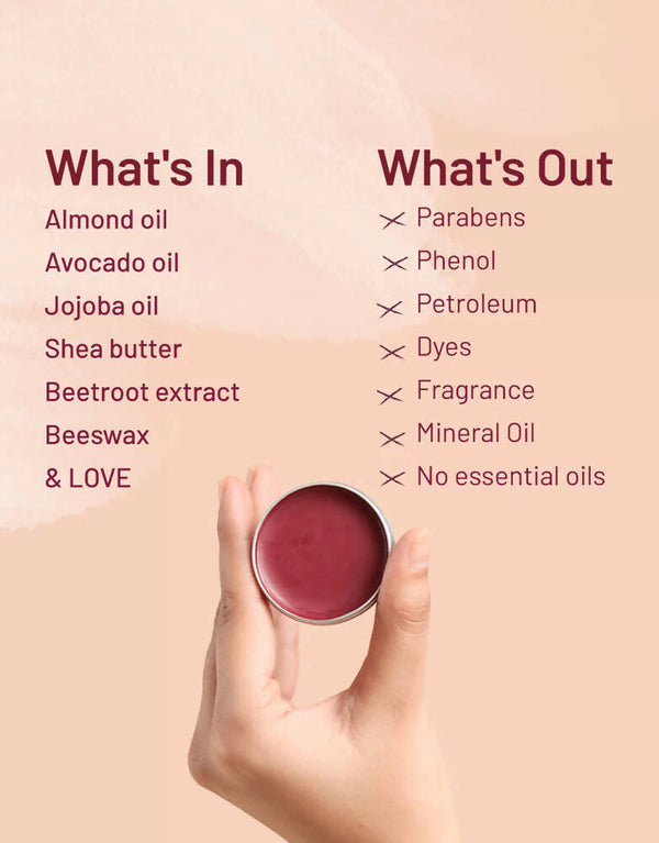 Revive your lips with the nourishing properties of beetroot. The Beetroot Lip Balm softens rough skin, moisturizes dry lips, and provides long-lasting hydration. Get soft and kissable lips now with our buttery goodness.
