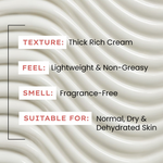 • Super hydrating pillowy rich moisturizing cream that instantly relieves skin dryness & irritation. It instantly relieves itchiness by locking in moisture and keeping your skin calm and nourished. Its thick creamy texture does not feel heavy or greasy and is fragrance-free. Offers instant and long-lasting moisturization to prevent Trans-Epidermal Water Loss (TEWL) caused by dehydration, environmental stressors, etc. It binds water to the skin to repair and protect the skin barrier. It has Natural Moisturizing Factors (NMF), which helps in maintaining skin’s hydration levels. 10% Heartleaf Extract provides deep hydration by locking in moisture. 7% NMF + Ceramide Complex strengthens the skin barrier and maintains hydration levels. Panthenol and Beta Glucan work together to soothe and nourish the skin, while Shea Butter offers additional moisture and softness.