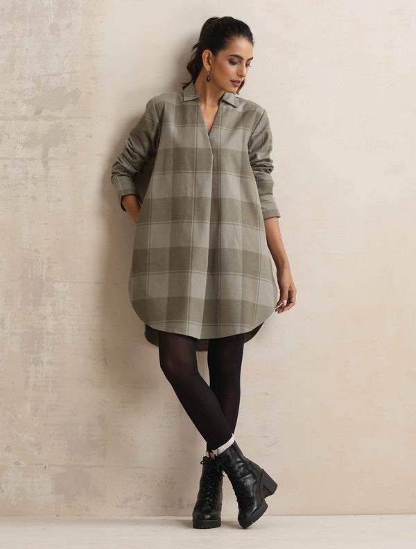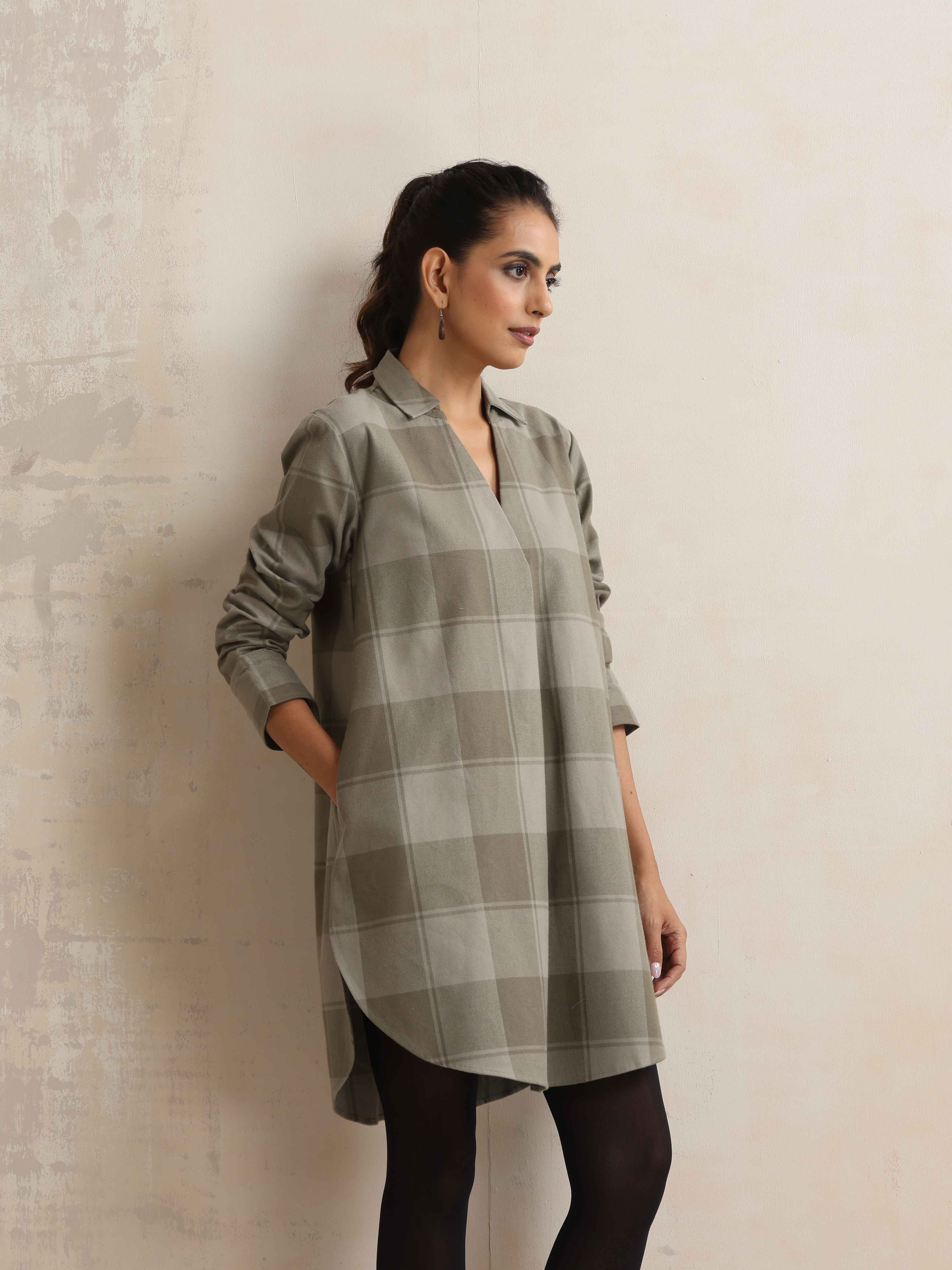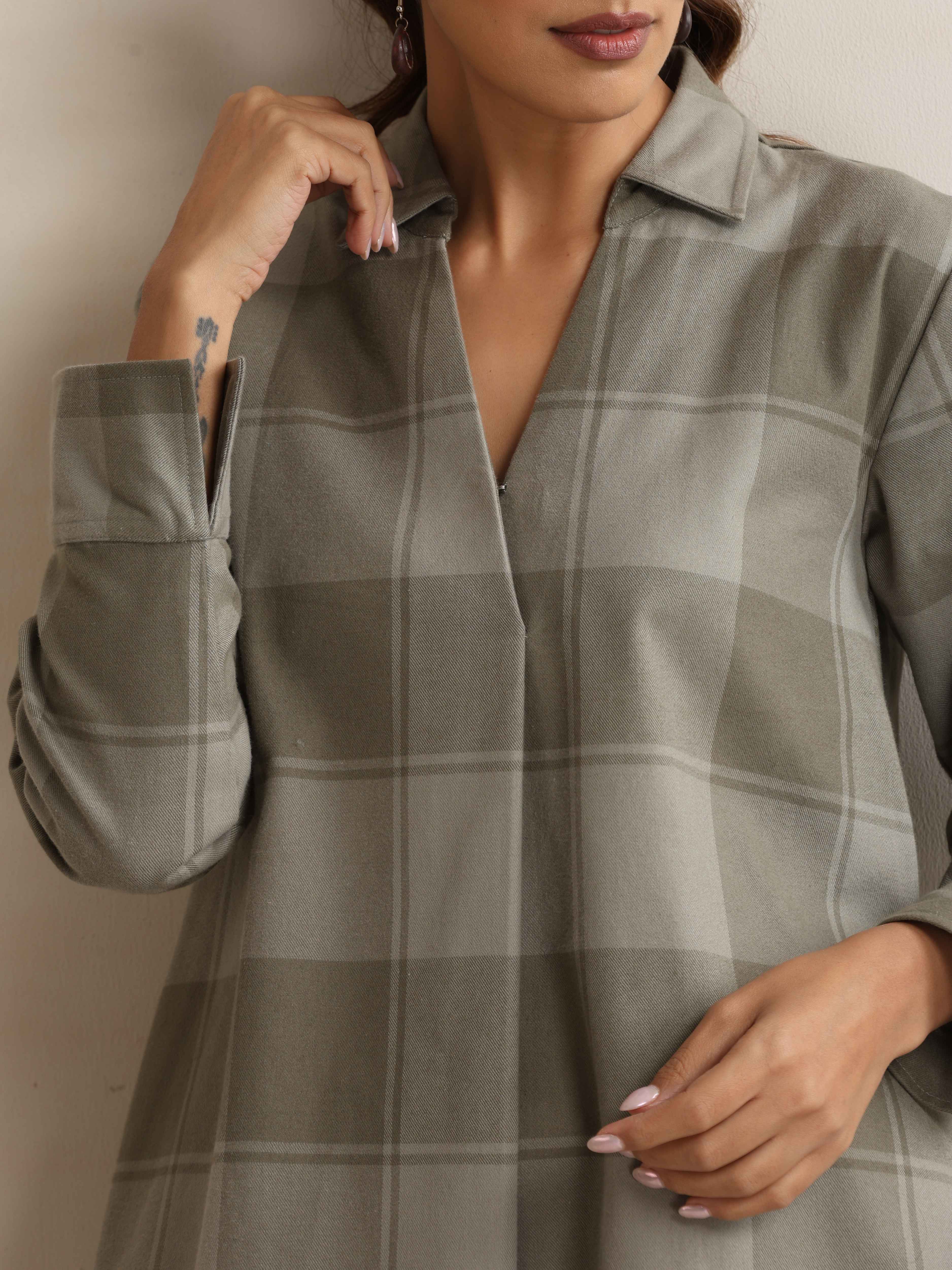 trueBrowns Green Check Pleated Winter Top - Distacart