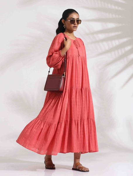trueBrowns Pink Cotton Tier Dress - Distacart