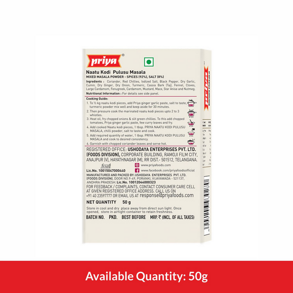 Priya Naatu Kodi Pulusu (Country Chicken) Masala - 50 gm - Pack of 4