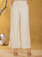 Cream-coloured printed palazzo, has an elasticated waistband with a slip-on closure