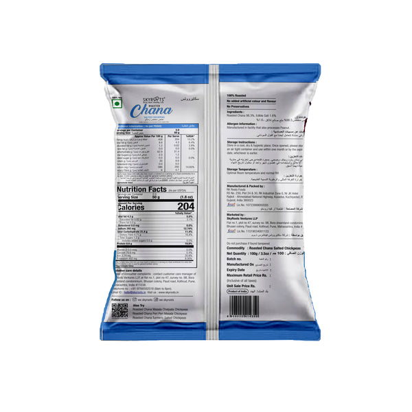 Skyroots Roasted Chana Salted ChickpeasRoasted chana, also known as roasted chickpeas or roasted garbanzo beans, is a popular and nutritious snack ...