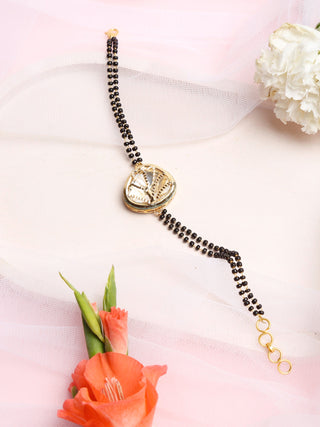 Women's Gold-Polished Black Beaded Kundan Mangalsutra Bracelet - Ruby Raang