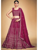 Pink Georgette Real Georgette Lehenga Choli features a georgette lehenga and georgette choli with georgette dupatta. Embroidery is completed with thread and sequins. This Style is made i India and checked by hand to ensure high quality.