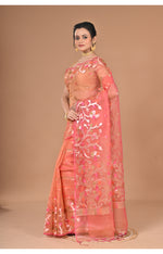 Morchari Semi Orzanga Jamdani Silk Saree-Peach