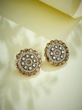 Nuyug 22K Gold Plated Cubic Zirconia Studded Contemporary Stone Earrings