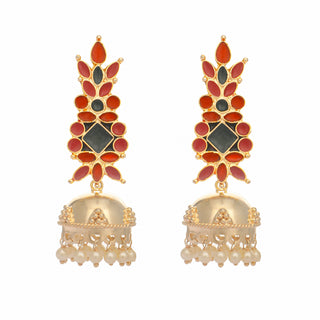Nuyug 22K Gold Plated Pearls Studded Contemporary Shaped Enamel Jhumkas