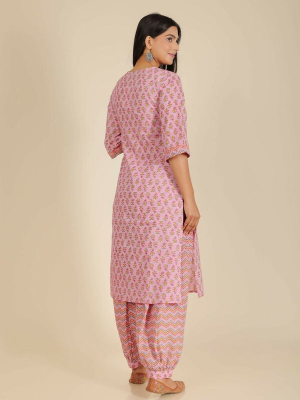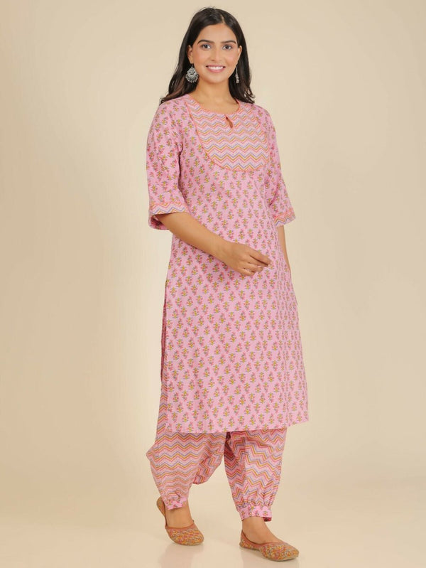 Aramya Pink Soft Cotton Floral Straight Kurta for Women