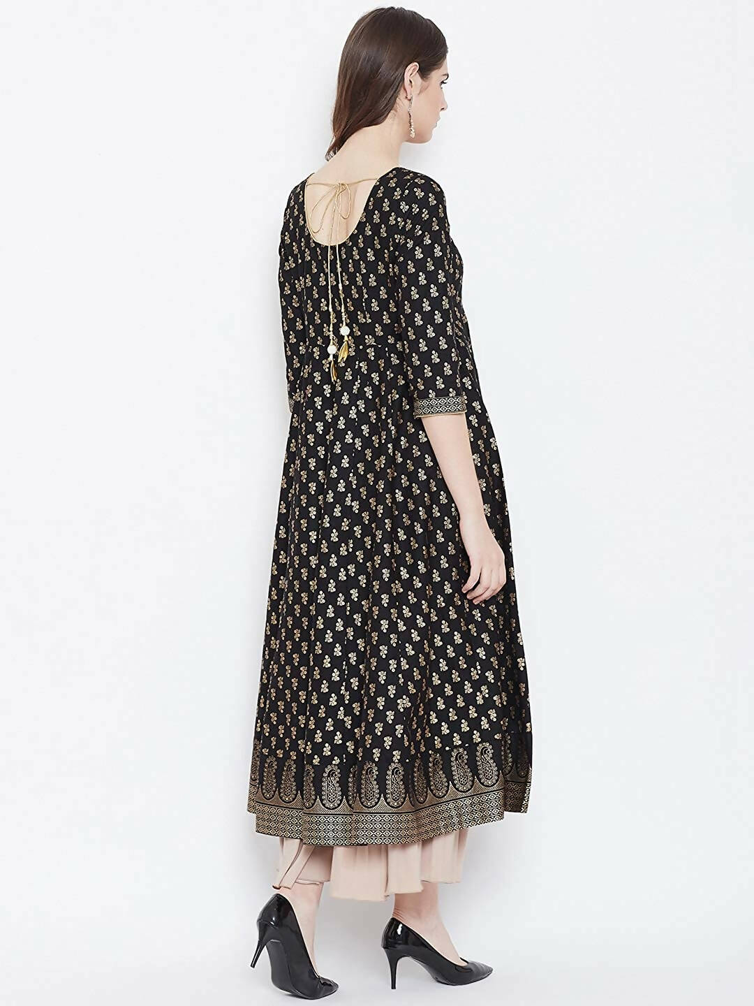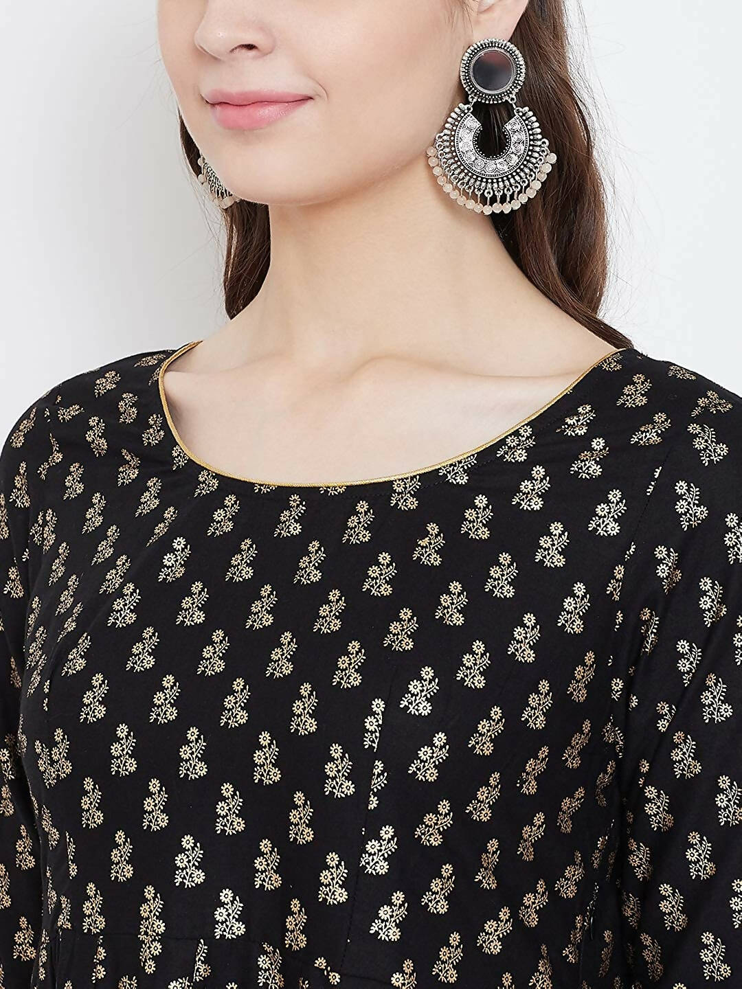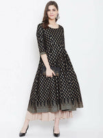 Stylish Hand Block Printed Black Embellished Cotton Blend