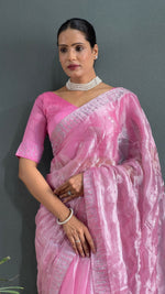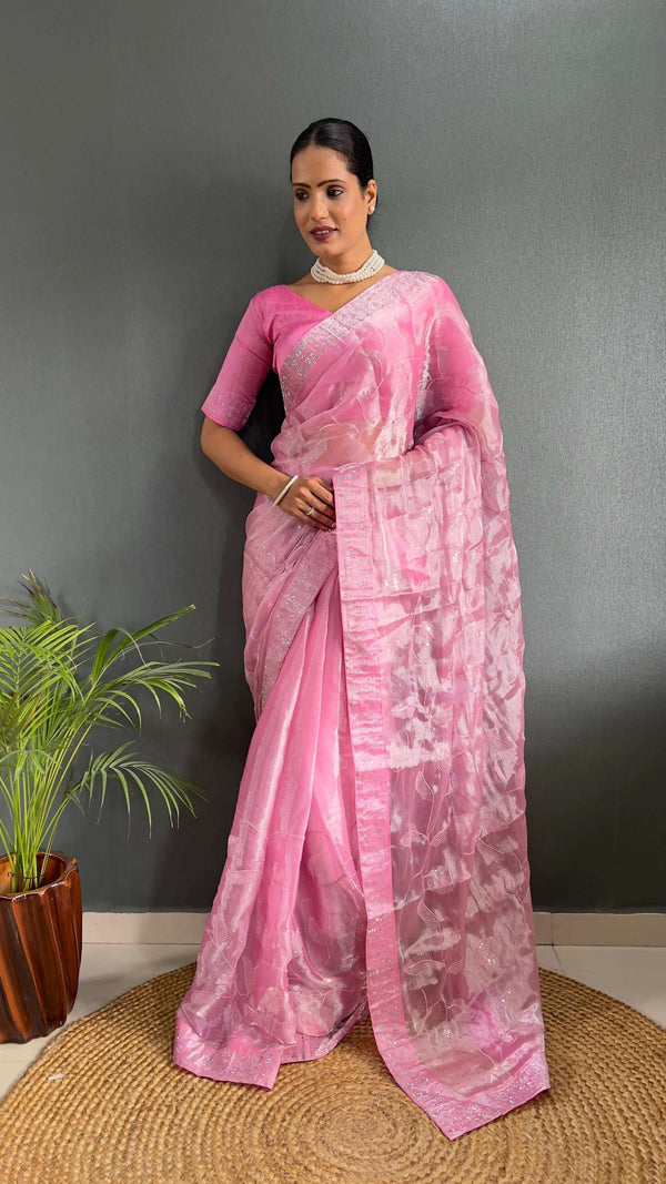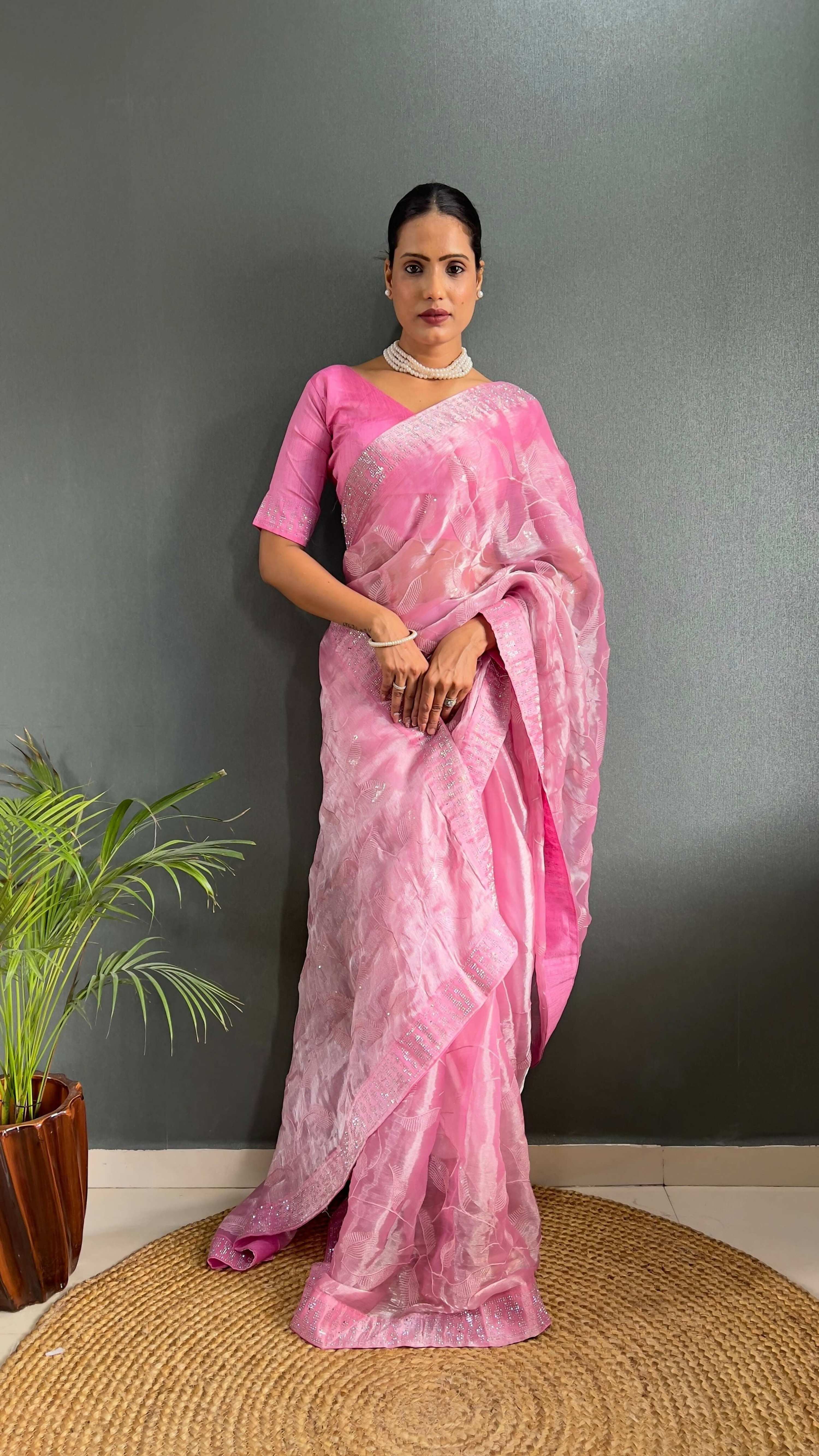 Preksha Creation Women One Minute Ready To Wear Saree Premium Burberry Silk Embellished With Beautiful Thread Work - PinkFabric DetailsSaree : Prem...