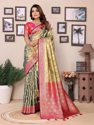 Vedant Vastram Tissue Silk Kanjeevaram Silk Saree - Olive - Distacart