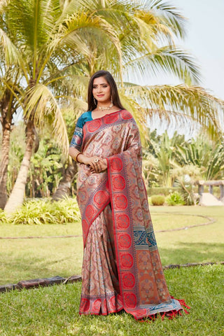 Vishnu Weaves Women's Coffee Soft Tussar Silk Saree with Blouse - Distacart