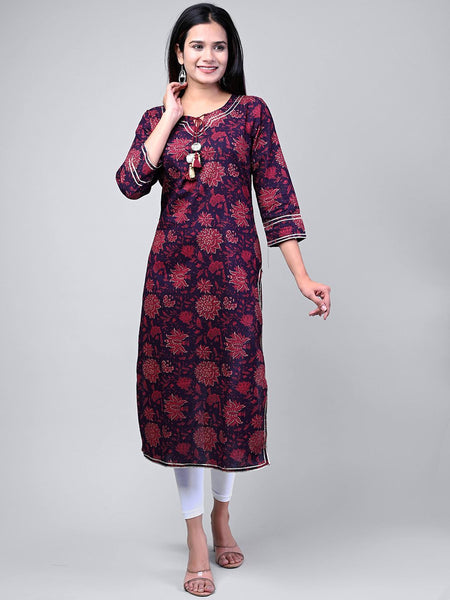 Swasti Women Maroon & Red Floral Printed Floral Kurta - Distacart