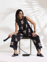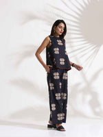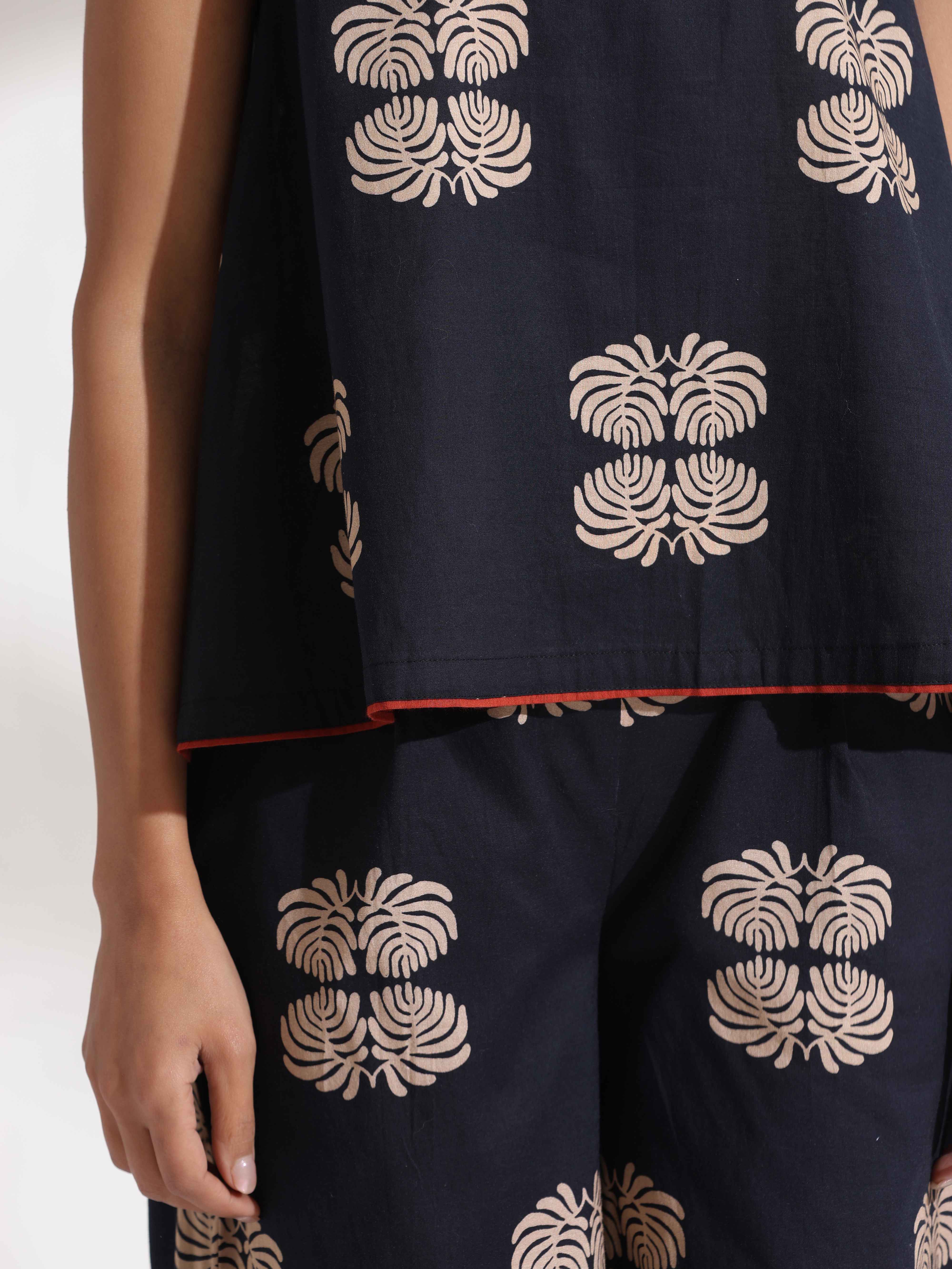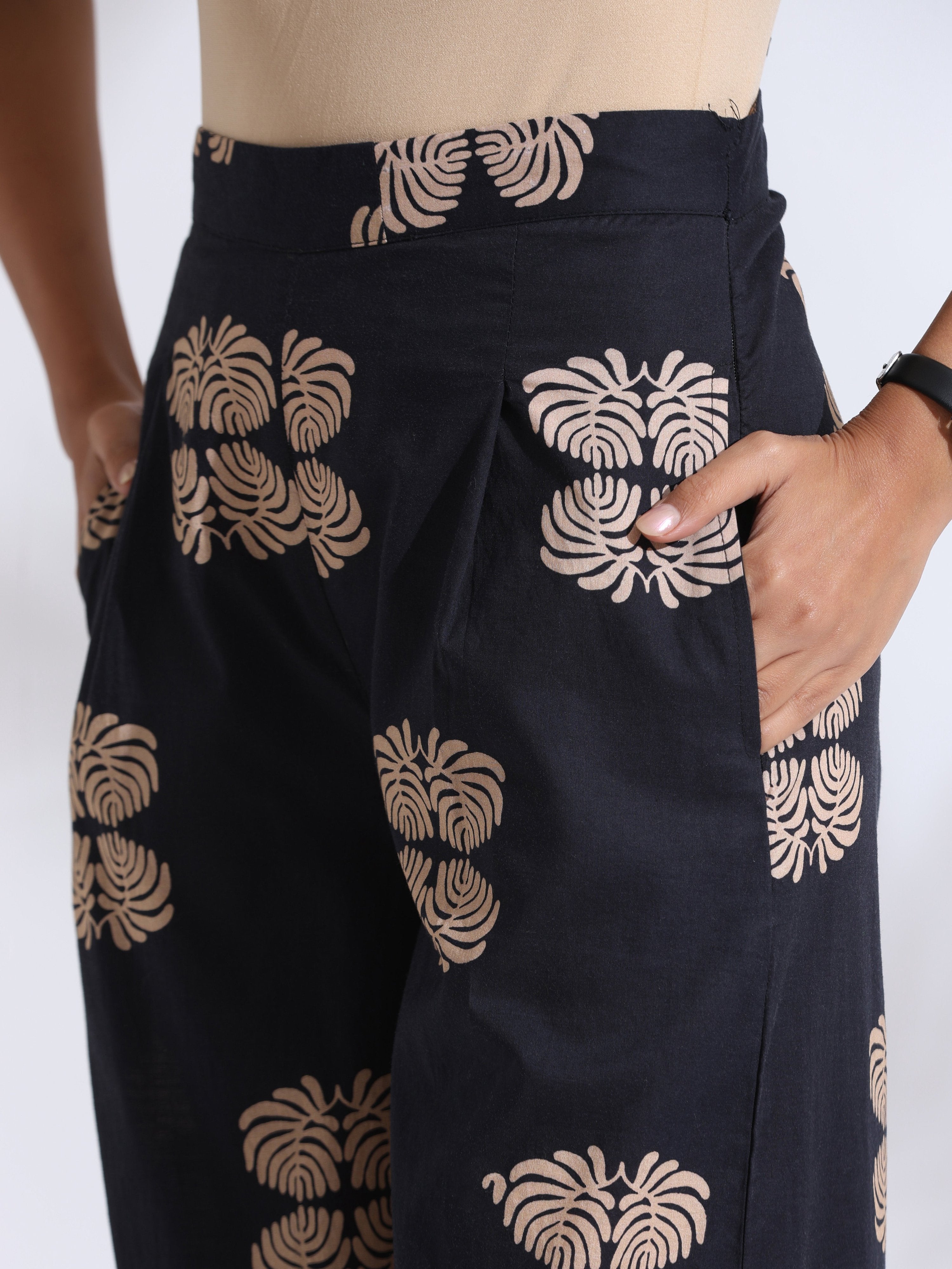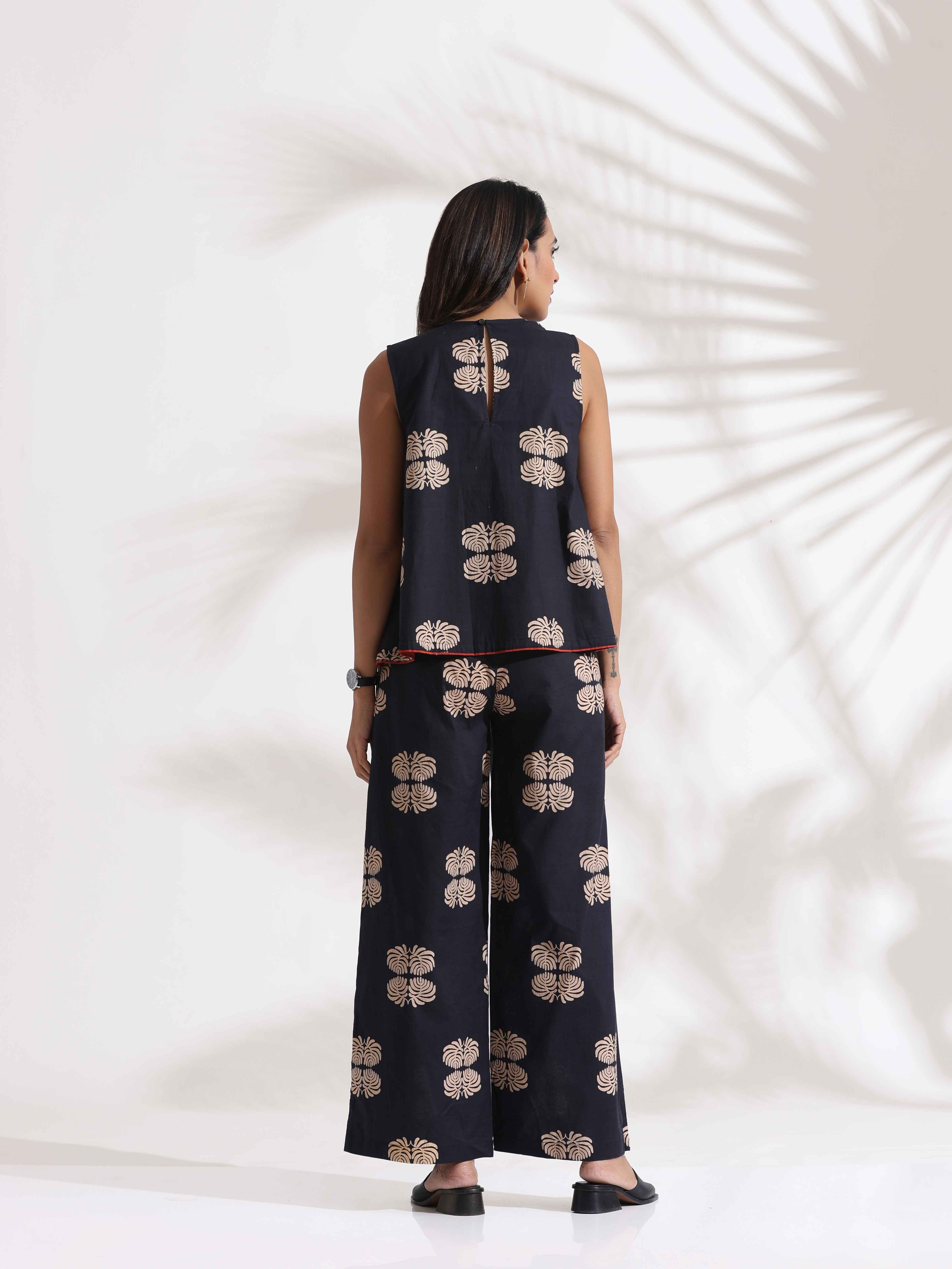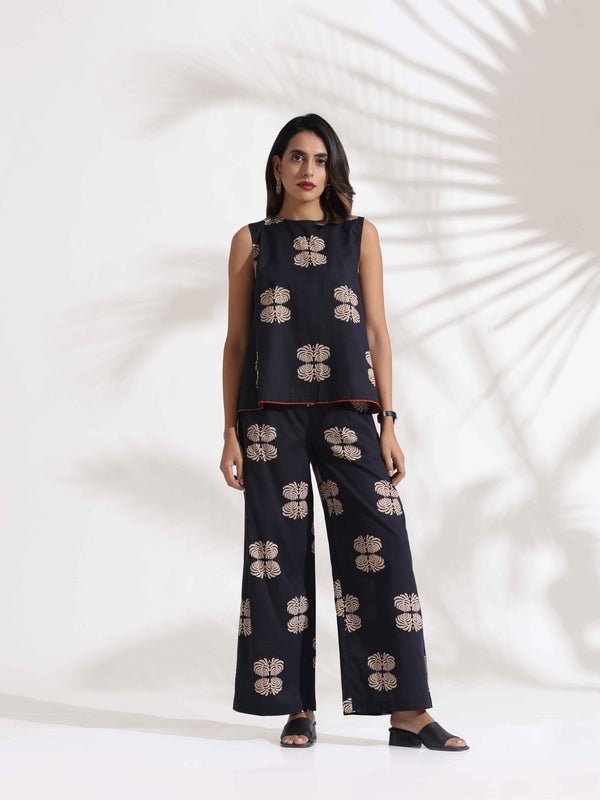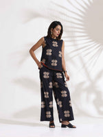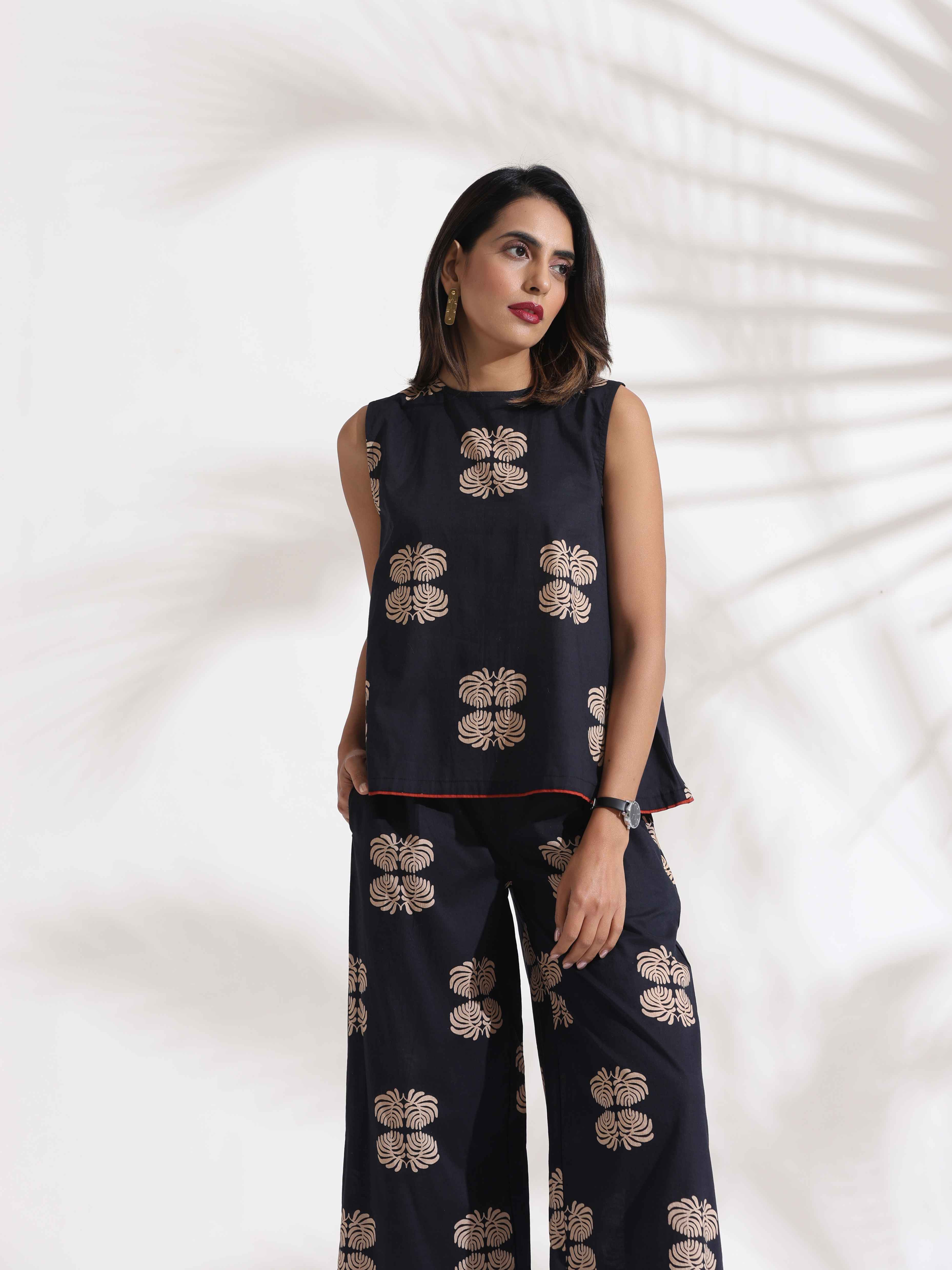 trueBrowns Black Cotton Print Top & Flared Pants Co-ord Set
