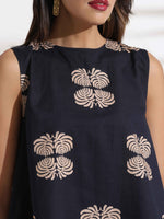 trueBrowns Black Cotton Print Top & Flared Pants Co-ord Set Description Step into effortless elegance with this black cotton print top and prin...