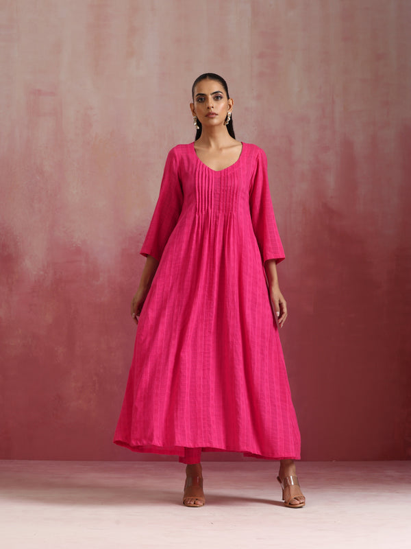 trueBrowns Pink Cotton Dobby Kurta Set