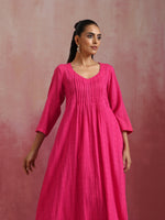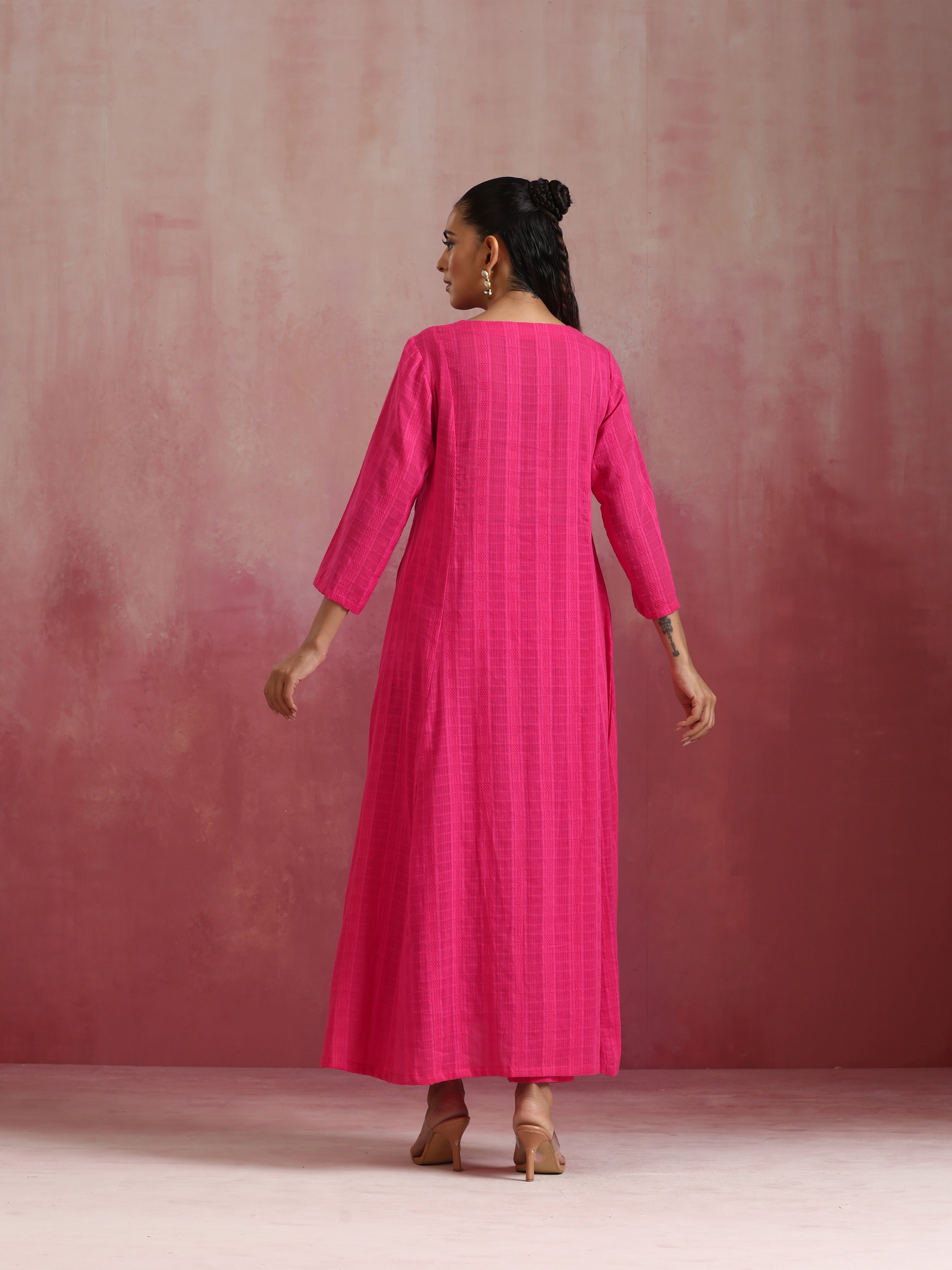 • Elevate your style with this pink cotton dobby kurta with 3/4th sleeves.