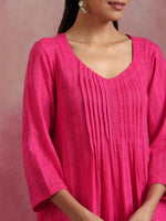 trueBrowns Pink Cotton Dobby Kurta Set - XS