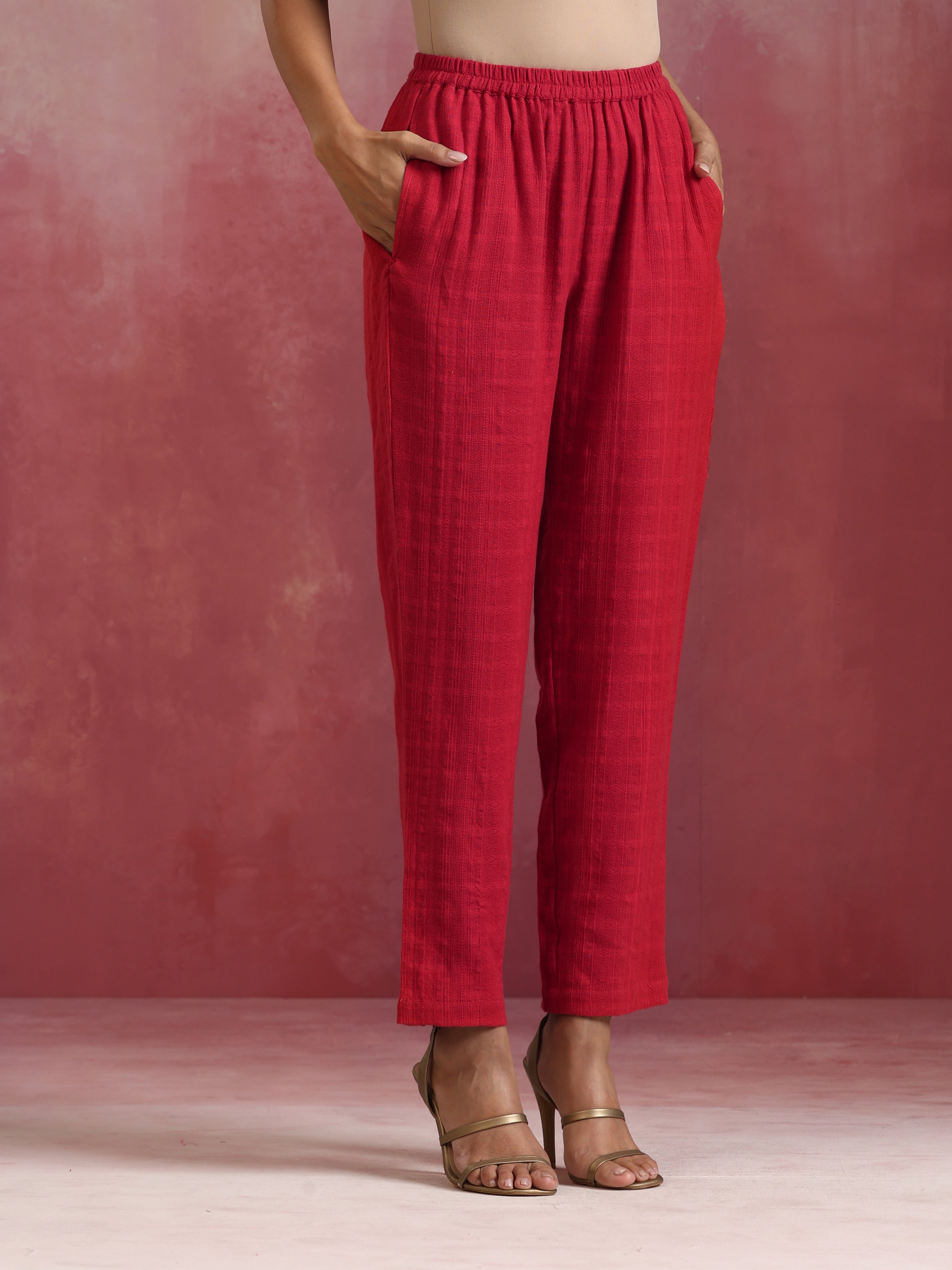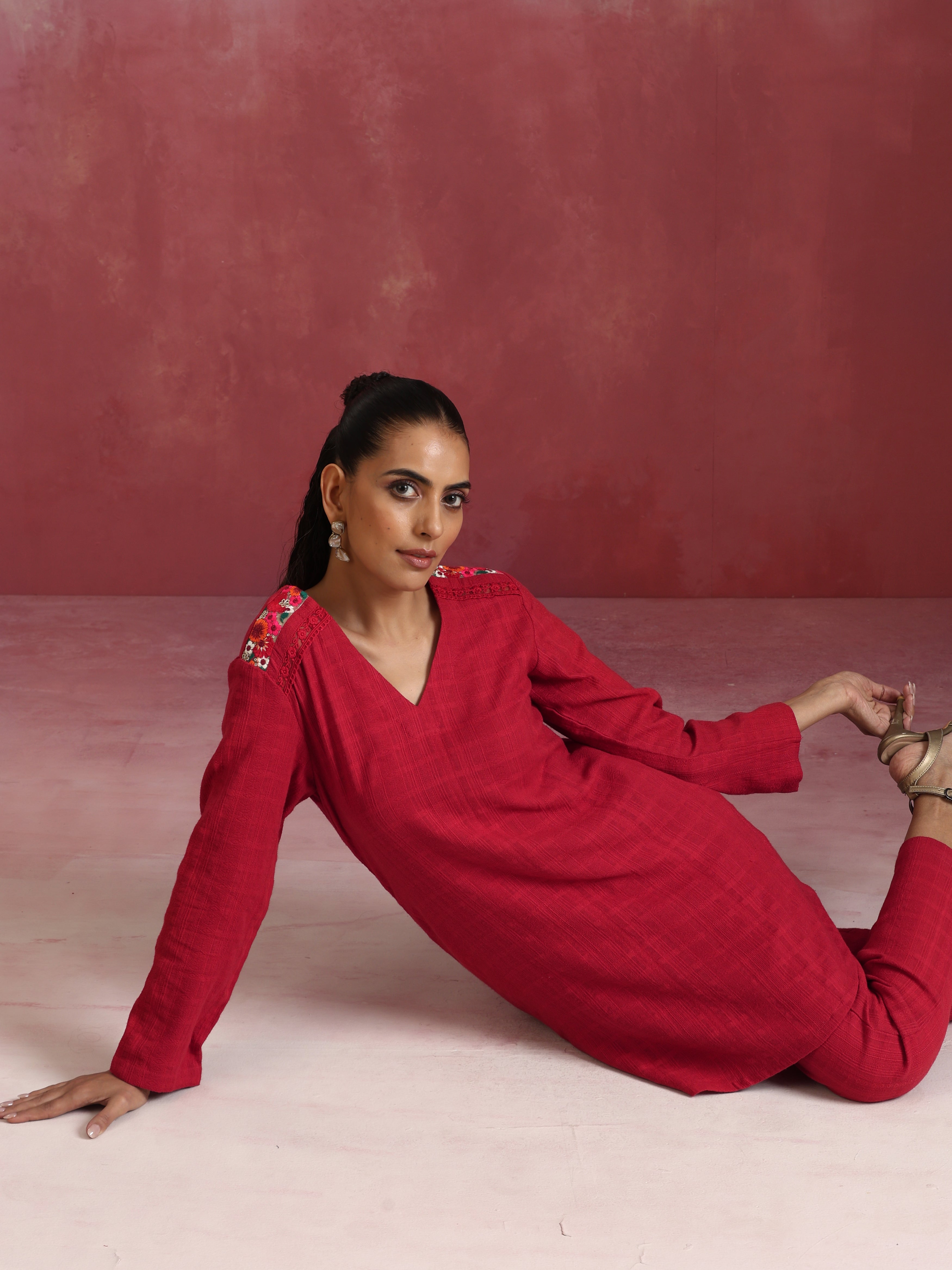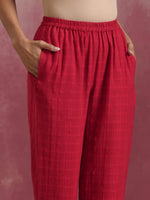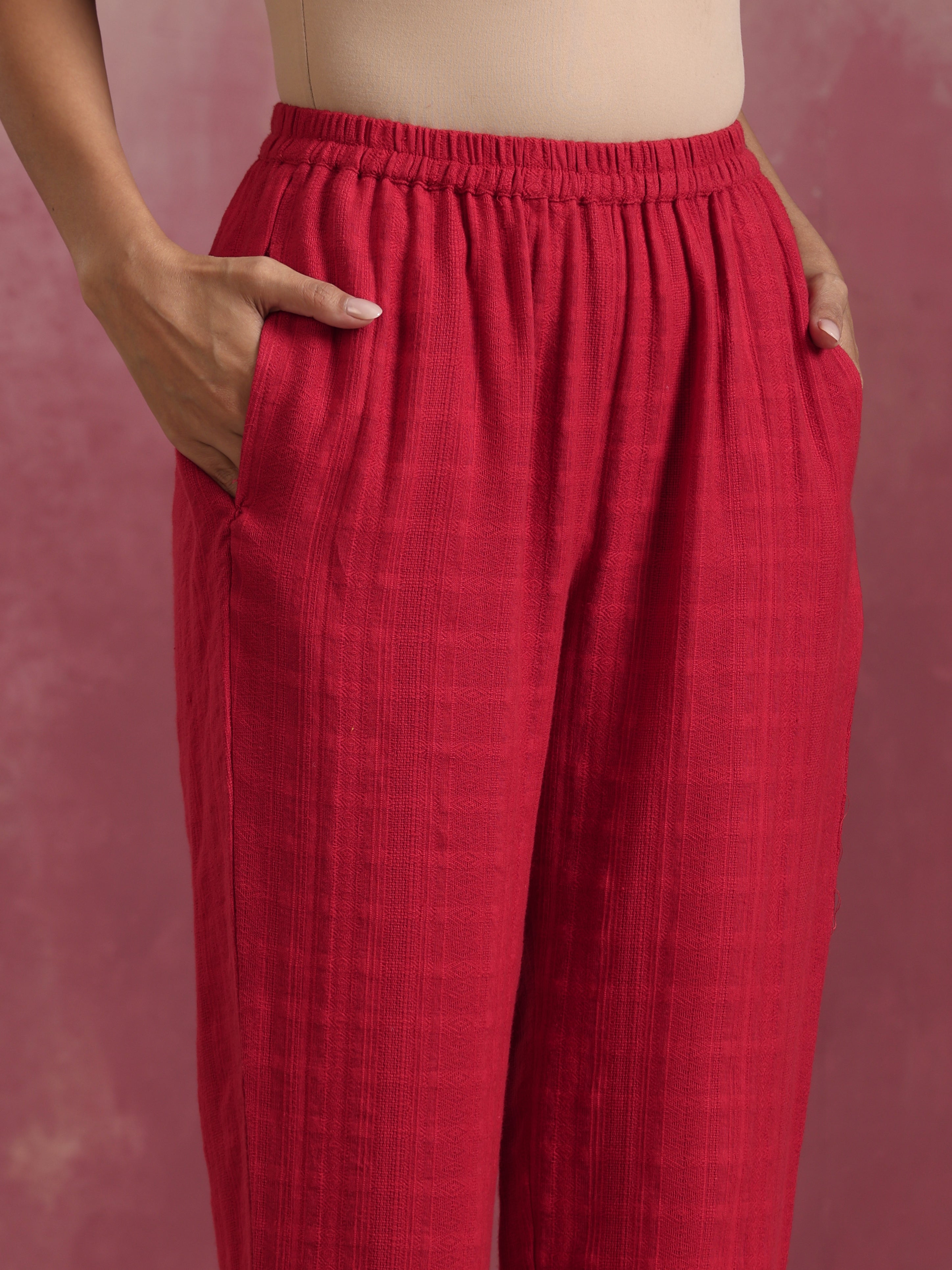 trueBrowns Red Cotton Dobby Kurta Co-ord set