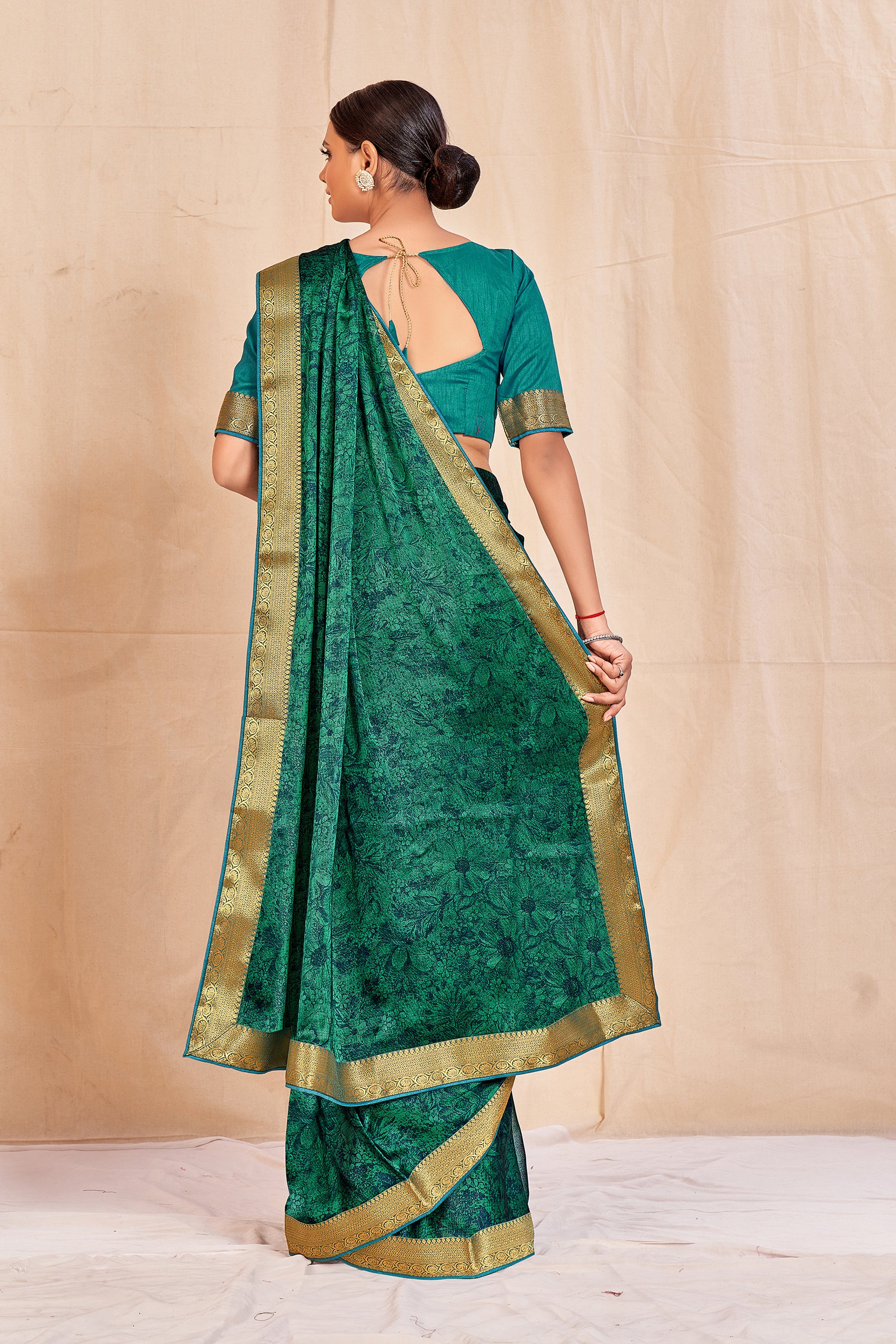 Vamika Rama Green Designer Cadbury Chiffon Banarasi Lace Saree