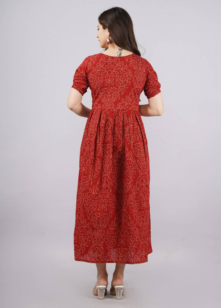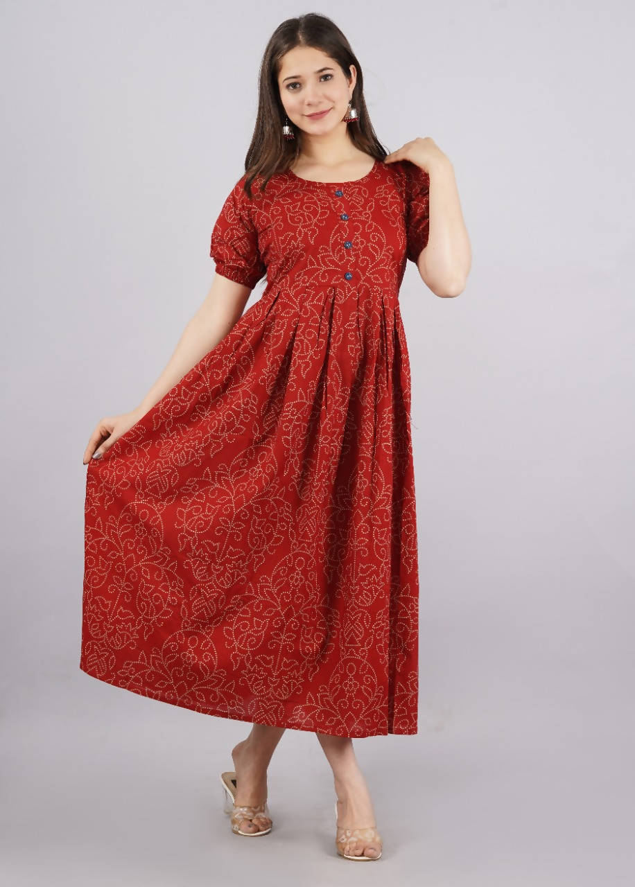 Vamika Red Cotton Printed Party Wear/Casual Wear Kurti