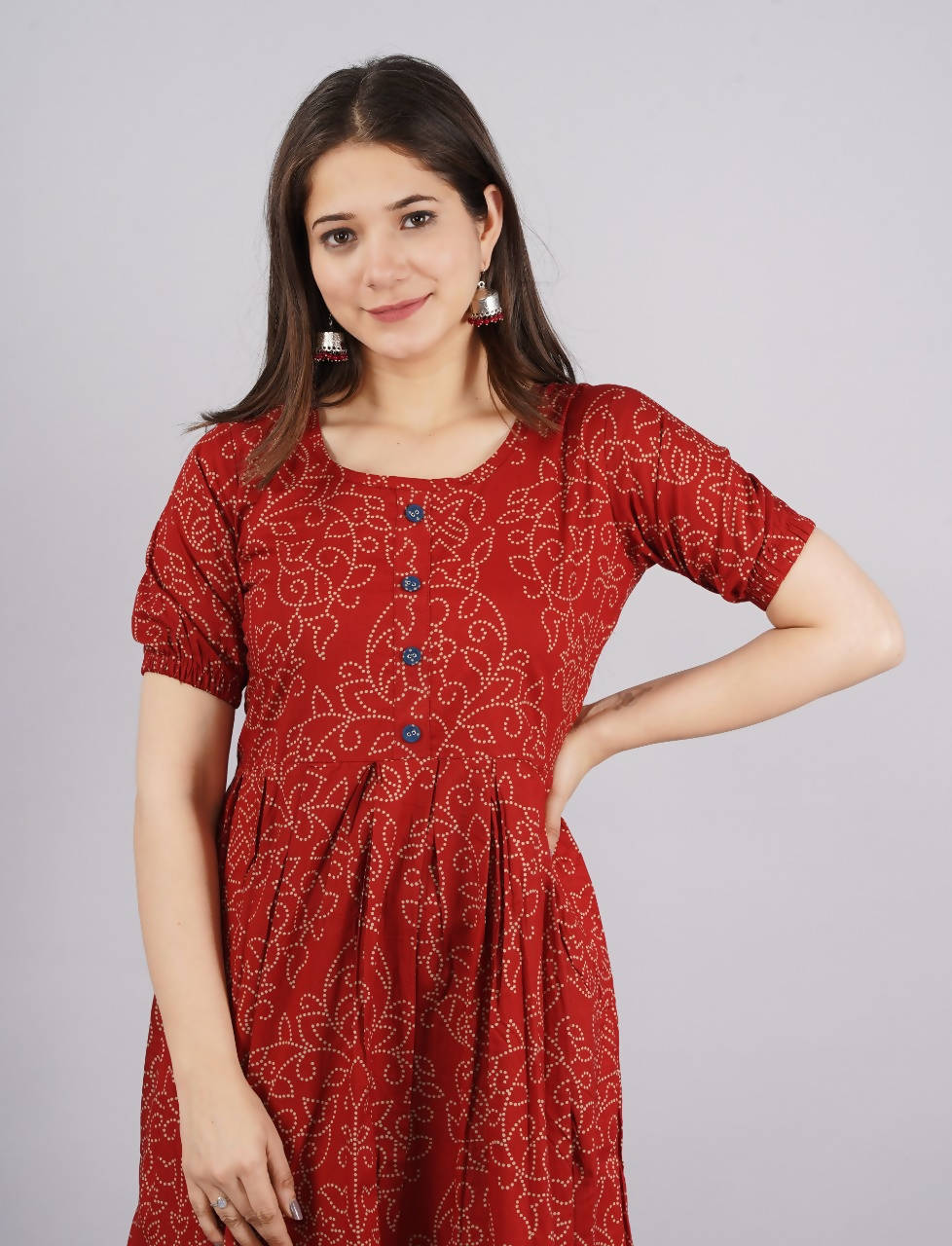 Vamika Red Cotton Printed Party Wear/Casual Wear KurtiCategory: KurtiWork: PrintedFabric Top: CottonCountry of Origin: IndiaColor Top: RedSleeves T...
