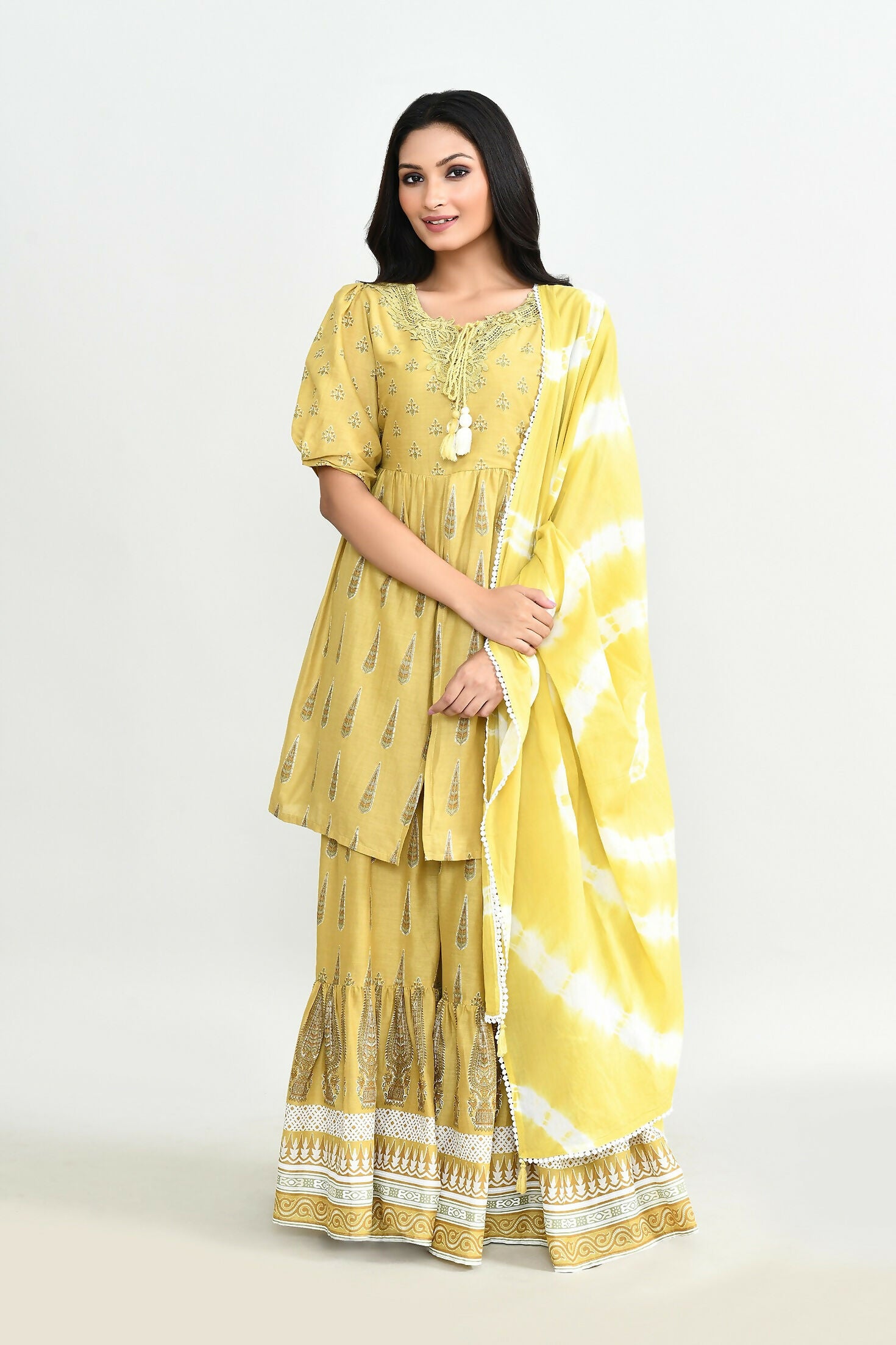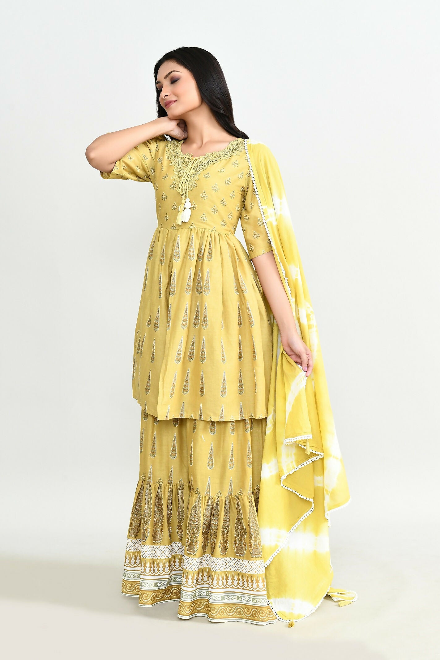 Joban Fashion Elegant Olive Green Cotton Sharara - S