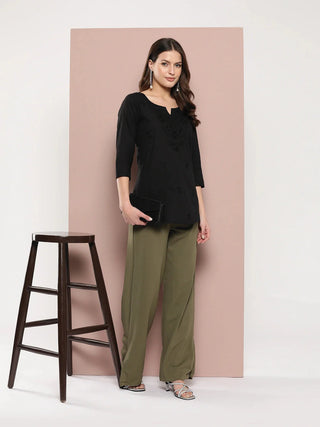 Yufta Black Embroidered Chikankari Cotton Kurta - Distacart