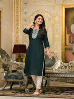 Juniper Women's Sea Green Ethnic Motif Printed Santoon Dress With Sequins & Thread Work