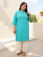 Juniper Women's Teal Modal Rayon Slub Plus Size Kurta - 3XL