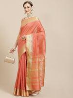 Kalini Coral & Golden Woven Design Saree - Distacart