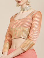 Kalini Coral & Golden Woven Design Saree