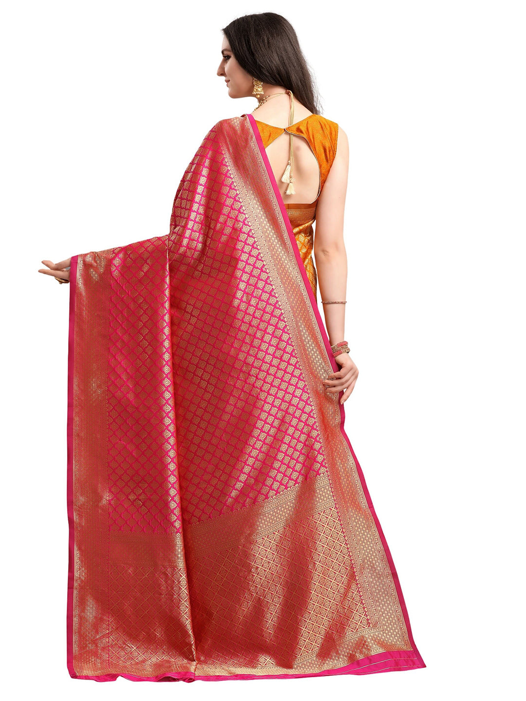 Kalini Pink & Mustard Yellow Ethnic Motifs Woven Design Half & Half Kanjeevaram Saree Product Details Design Details Pink and mustard ...